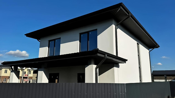 Арт. 119233910 Продаётся новый 2-этажный дом в престижном районе Немецкая Деревня.Дом выполнен в стиле Райта с большим вылетом кровли и витражным остеклением. Облицовка дома - Итальянская штукатурка с гарантией 40 лет! Два полноценных этажа, просторная терраса 18.46 кв. м. Две спальни + мастер-спальня с гардеробом. Большая кухня-гостиная с выходом на террасу с зоной для барбекю. Все центральные подземные коммуникации: центральный газ по меже, электричество, интернет. В доме: газовый котел, свет 15 кВТ, разводка электричества, вода - скважина 40 м, биосептик Евролос про4+ на 12м?. Входная дверь изготовлена под заказ, тяжелая и качественная. Дом полностью готов к ремонту и находится в стадии предчистовой отделки. Вам осталось выбрать стиль интерьера, а наш дизайнер подготовит уникальный дизайн-проект.Инфраструктура: Детские сады и школы; Магазины и рестораны; Аптеки и медицинский центр;Детские и спортивные площадки; Парки и скверы; Рядом озеро. Гарантия на дом 5 лет. Дом подходит под любую льготную ипотеку.Звоните, отвечу на вопросы и организую показ!