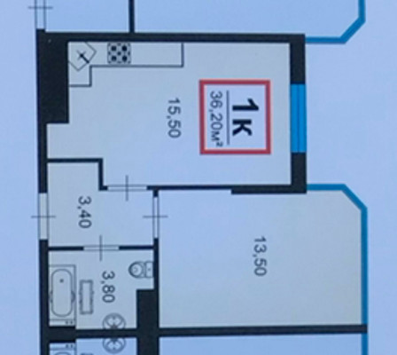 Площадь: 36.2 м2 (комнаты: 15.5м2)
